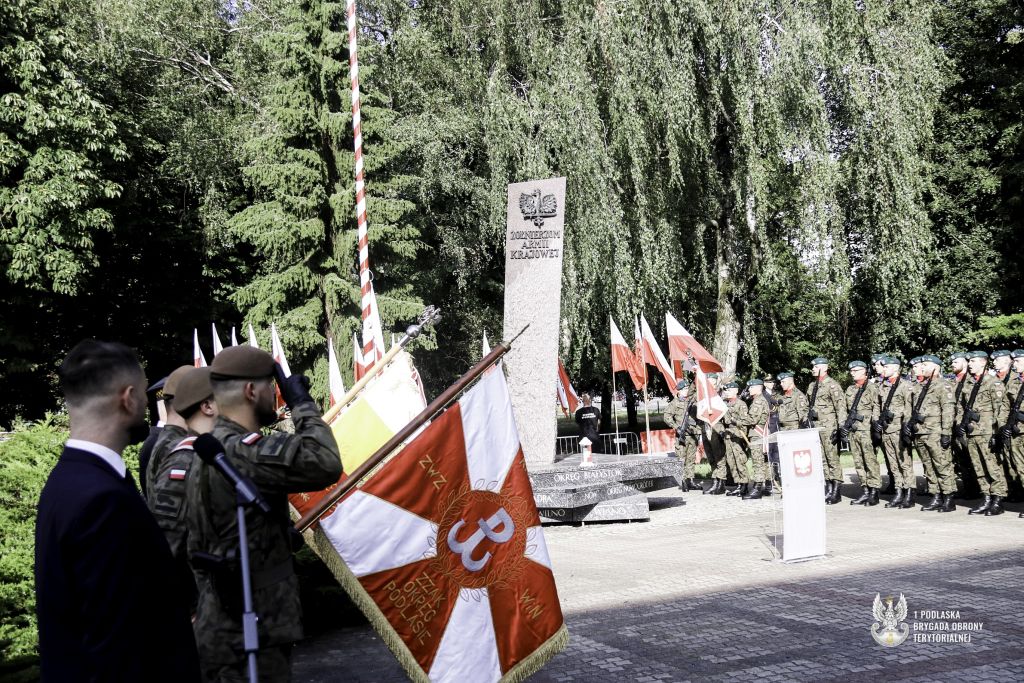 Terytorialsi wraz z żołnierzami 18 Białostockiego Pułku Rozpoznawczego wystawili posterunek honorowy i poczet sztandarowy ze Sztandarem Światowego Związku Żołnierzy AK.