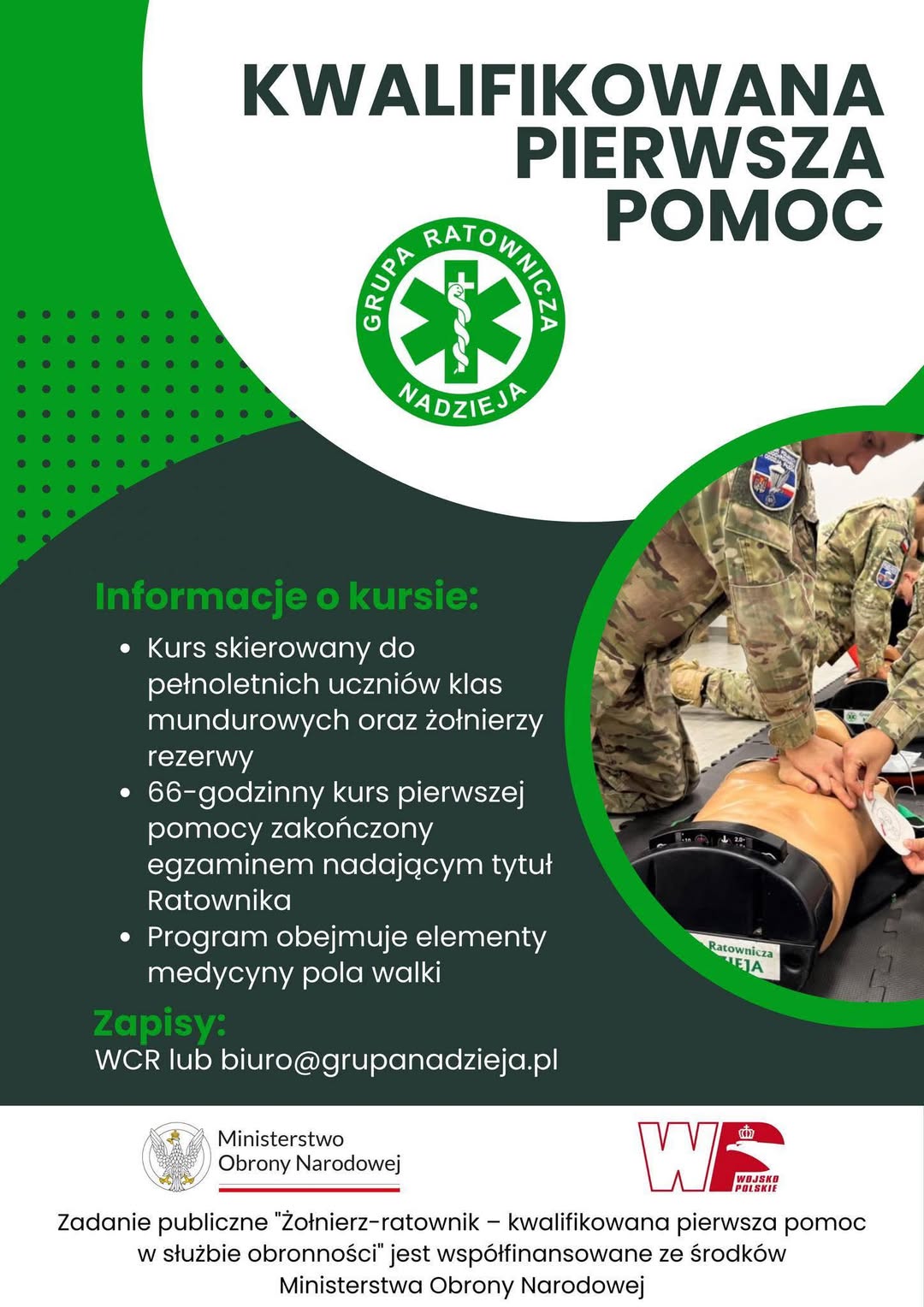 Kurs skierowany jest do pełnoletnich uczniów klas mundurowych oraz żołnierzy rezerwy. Terminy zajęć: 03-05.10.2025 r. i 10-12.10.2025 r.