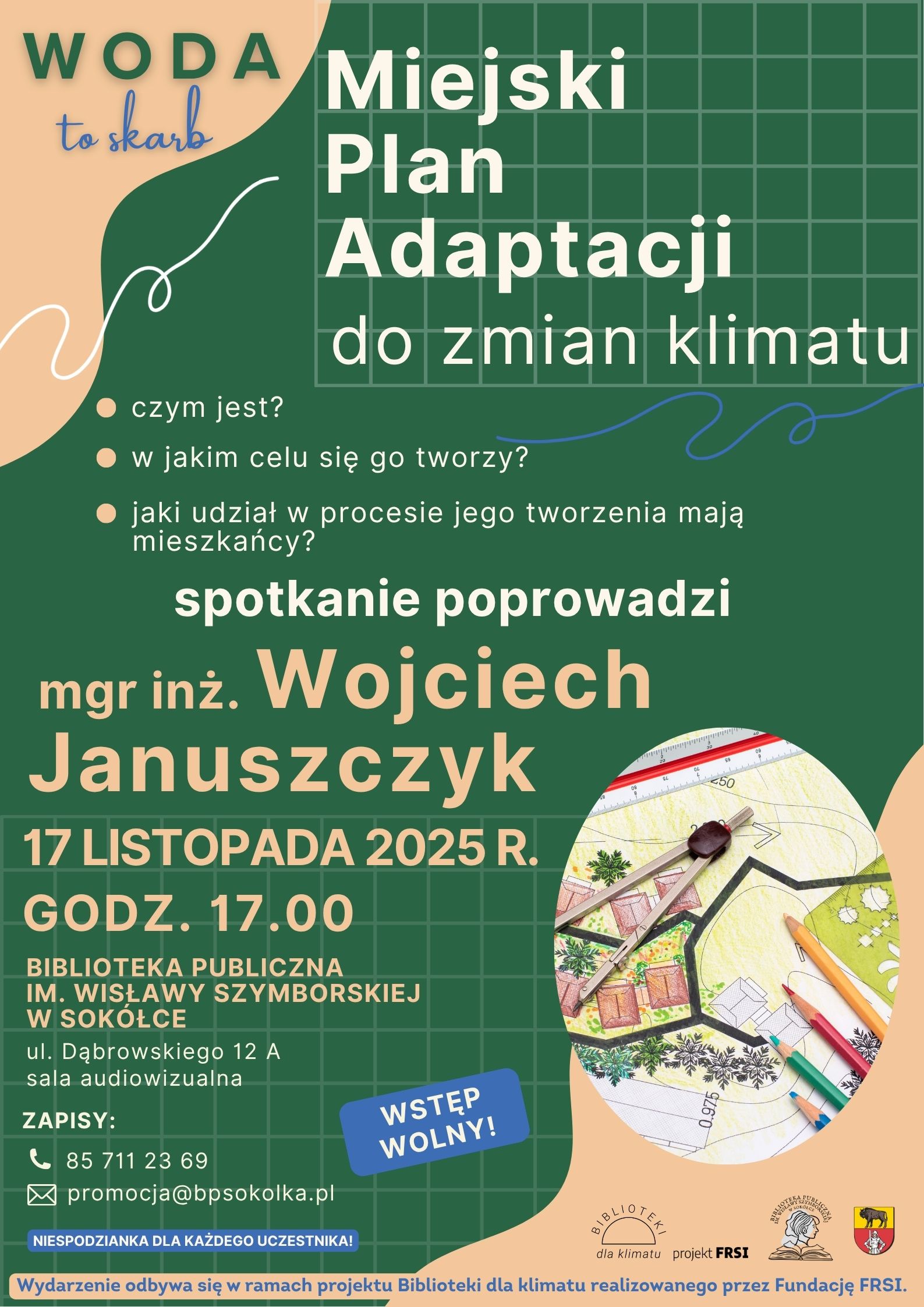 Biblioteka Publiczna im. Wisławy Szymborskiej w Sokółce serdecznie zaprasza na kolejne spotkania z cyklu „Woda to skarb” w ramach projektu Biblioteki dla klimatu realizowanego przez Fundację Rozwoju Społeczeństwa Informacyjnego (FRSI).
