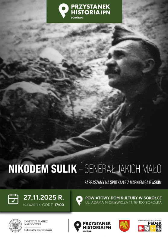Bohaterem spotkania będzie generał Nikodem Sulik – postać wyjątkowa i wciąż zbyt mało znana.