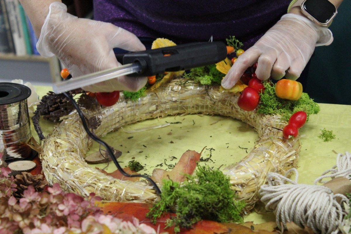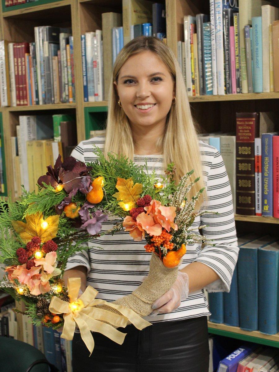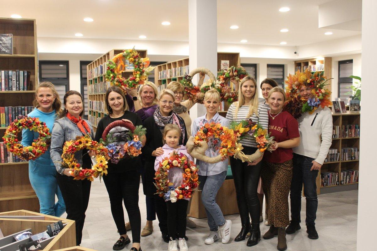 Zajęcia przebiegły w miłej i przyjaznej atmosferze, wszyscy świetnie się bawili, wymieniali pomysłami oraz doświadczeniem. Wyplecione wieńce teraz będą zdobić domy czytelników, dając im satysfakcję z wykonanej pracy.
