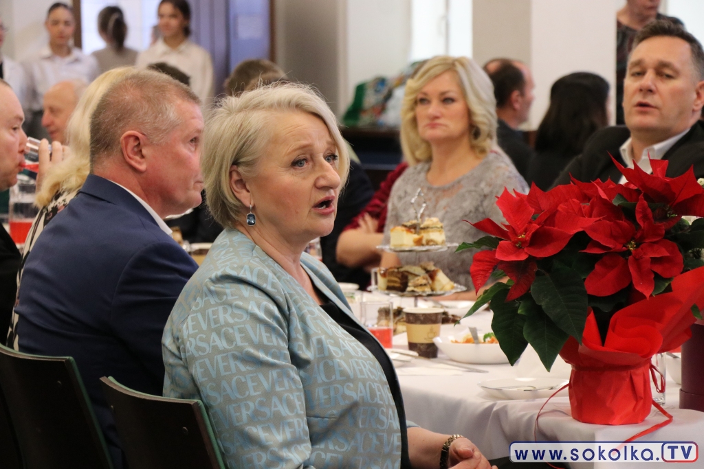 Barbara Sawicka, prezes Koła Terenowego Polskiego Związku Niewidomych w Sokółce, w swoim przemówieniu podkreśliła, jak ważne są takie spotkania dla członków koła. Część z nich to osoby samotne, przebywając na takich wydarzeniach w takim gronie, otoczeni życzliwością i wsparciem, czują się mniej osamotnieni. Spotkanie opłatkowe przynosi im radość.