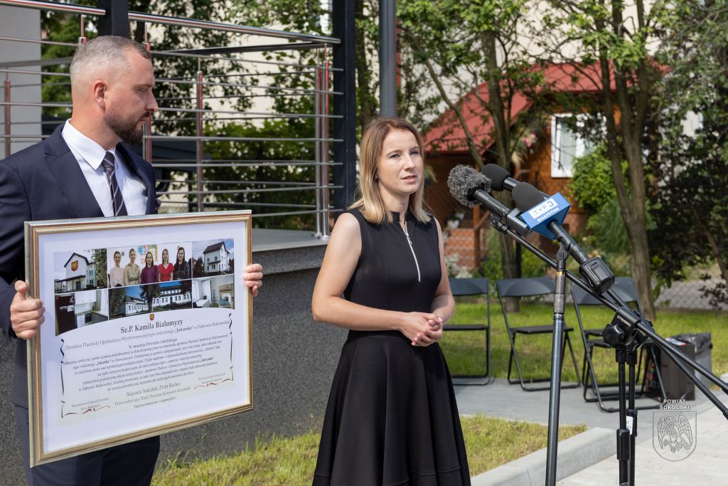 Niewiele powiatów w Polsce może poszczycić się tyloma domami dziecka, jak powiat sokólski. To ogromny powód do dumy Dziękuję panu staroście za wyjątkową wrażliwość na los dzieci, zwłaszcza tych, które mimo młodego wieku noszą już w sobie ciężar trudnych doświadczeń. To dzięki jego zaangażowaniu powstała ta placówka właśnie tutaj, w Dąbrowie Białostockiej – mówiła Kamila Białomyzy.