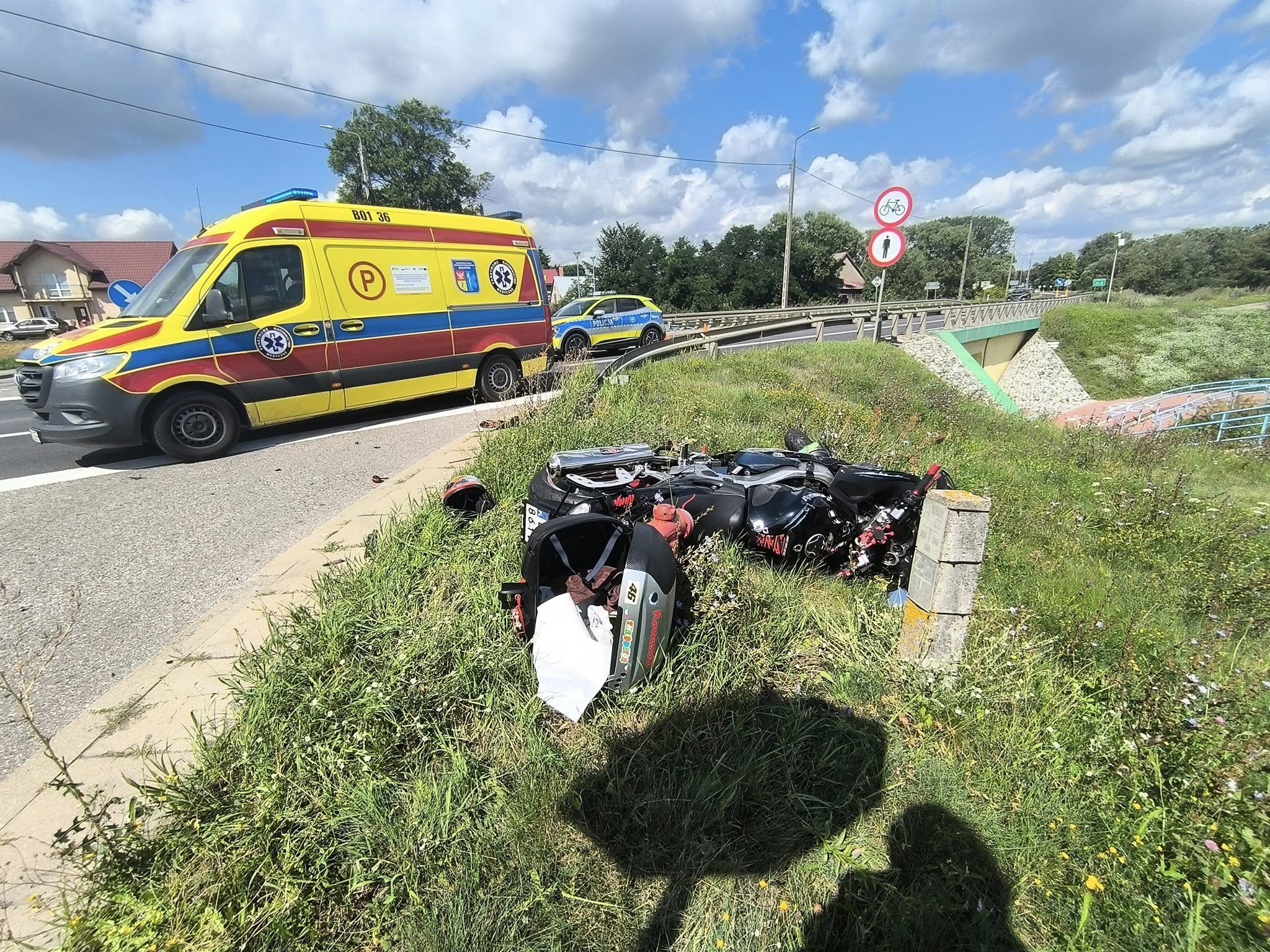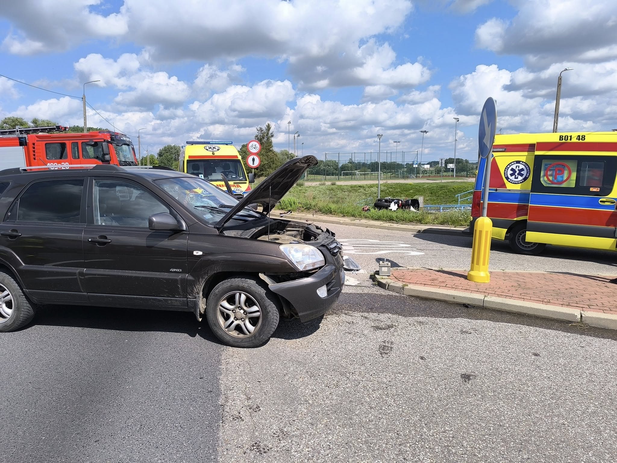 Na miejscu okazało się, że kierowca pojazdu osobowego KIA, wyjeżdżając z drogi podporządkowanej, nie ustąpił pierwszeństwa motocykliście, wskutek czego doszło do kolizji. Kierujący jednośladem został zabrany do szpitala.