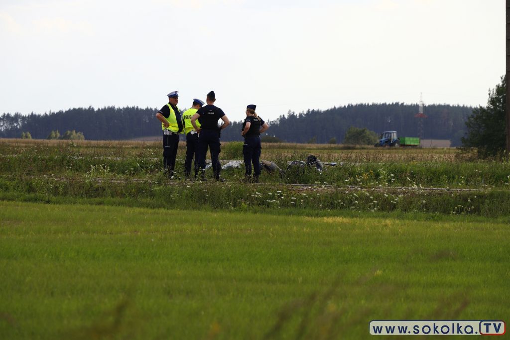 51-letni motocyklista został ranny i trafił pod opiekę służb medycznych. Droga w miejscu zdarzenia została zablokowana. Policja prowadzi czynności wyjaśniające okoliczności wypadku.