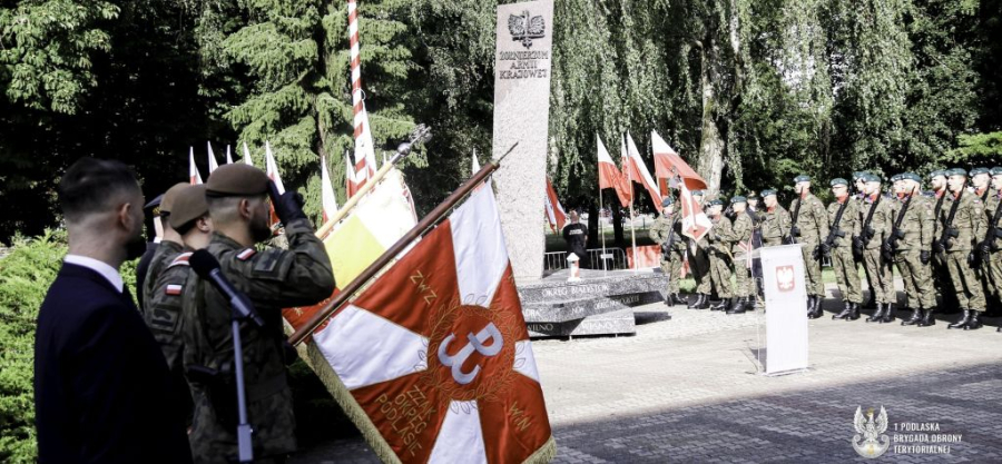 Terytorialsi wraz z żołnierzami 18 Białostockiego Pułku Rozpoznawczego wystawili posterunek honorowy i poczet sztandarowy ze Sztandarem Światowego Związku Żołnierzy AK.