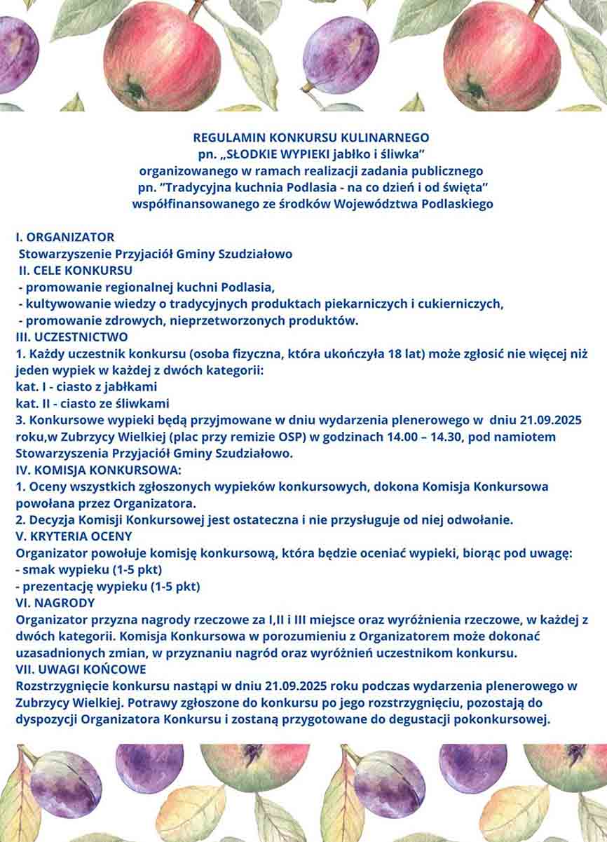 Tematem konkursu będą codzienne i świąteczne łakocie, a w głównej roli wystąpią jabłka i śliwki – owoce od lat obecne w regionalnej kuchni.
