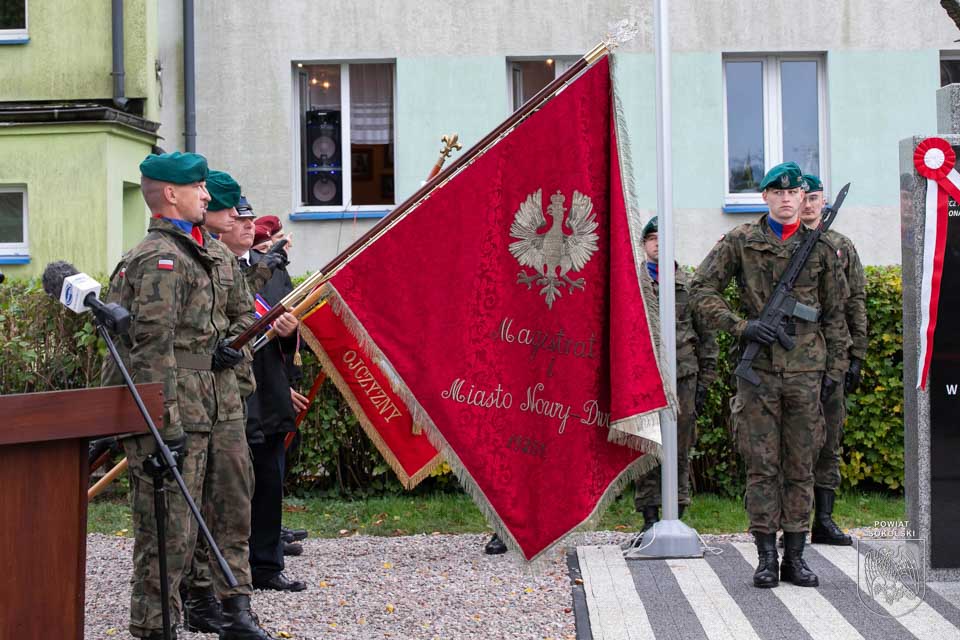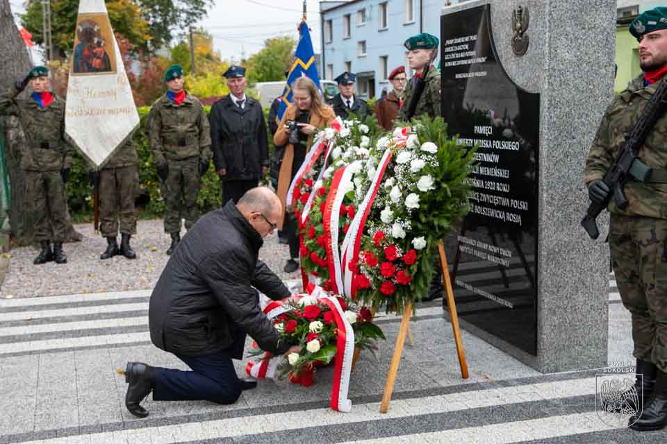 Dla Powiatu Sokólskiego pamięć o Bitwie Niemeńskiej i jej bohaterach ma szczególne znaczenie. Od lat dbamy o to, by historia tych wydarzeń była żywa – poprzez lekcje historii i uroczystości patriotyczne. W imieniu Zarządu Powiatu Sokólskiego składam serdeczne podziękowania wszystkim osobom i instytucjom zaangażowanym w budowę pomnika w Nowym Dworze. Dziękujemy za Waszą ofiarność, zaangażowanie i troskę o zachowanie pamięci historycznej naszej małej Ojczyzny. Niech ten pomnik przypomina, że wolność, którą dziś się cieszymy, została okupiona młodą krwią. Niech będzie lekcją dla przyszłych pokoleń – że warto kochać Polskę, dbać o nią i bronić jej wartości, tak jak czynili to nasi przodkowie – podkreślił Łabieniec.