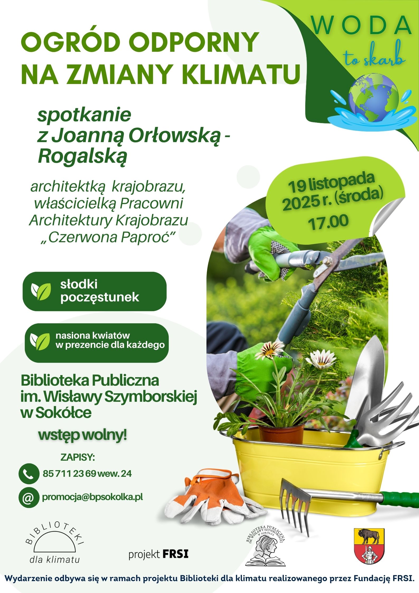 Biblioteka Publiczna im. Wisławy Szymborskiej w Sokółce serdecznie zaprasza na kolejne spotkania z cyklu „Woda to skarb” w ramach projektu Biblioteki dla klimatu realizowanego przez Fundację Rozwoju Społeczeństwa Informacyjnego (FRSI).