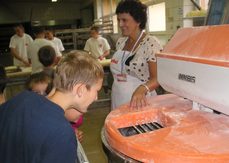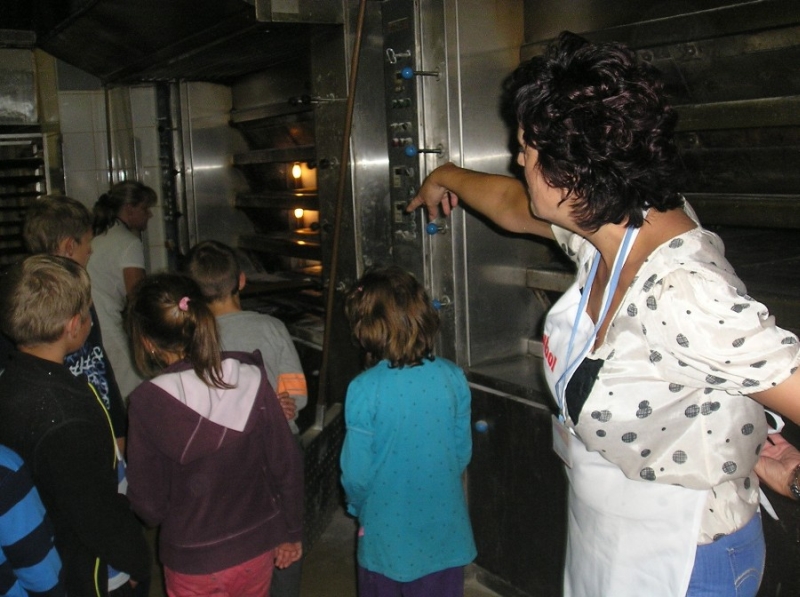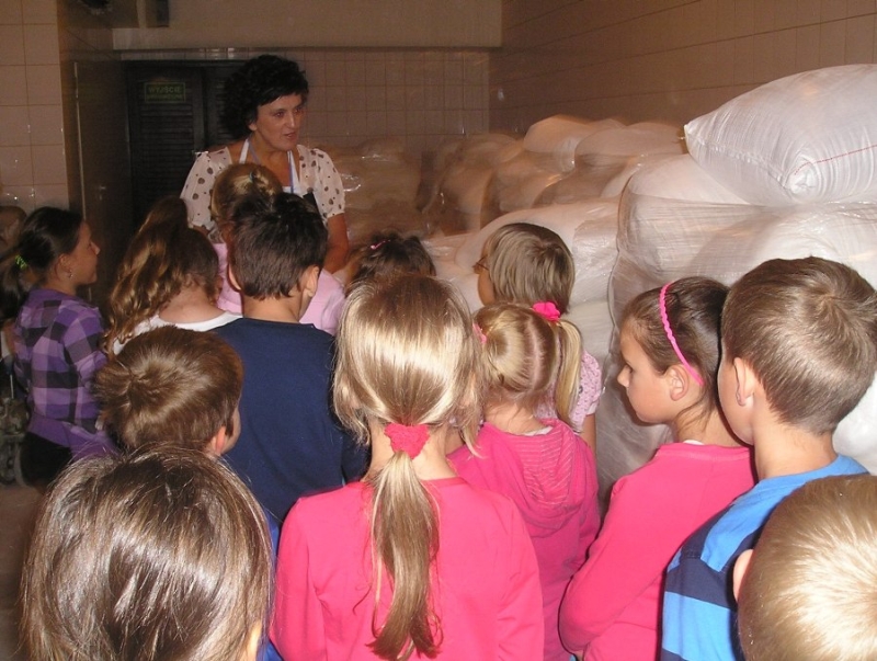 Dzięki uprzejmości Pani Kierownik Teresy Górskiej dzieci miały okazję przyjrzeć się przyrządom i maszynom, które w piekarni spełniają ważną rolę. Zapoznały się ze sposobem przygotowania i wypieku pieczywa oraz produktami potrzebnymi do jego wytworzenia.