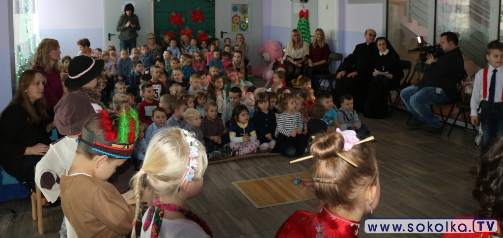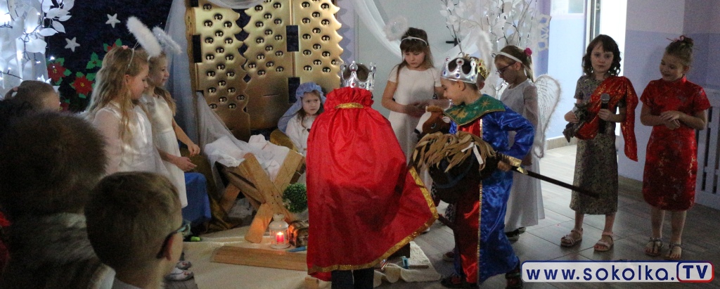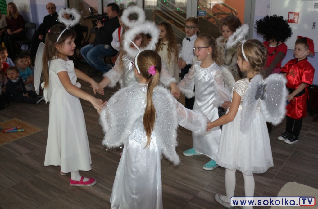 Święta Bożego Narodzenia to czas niezwykły związany z tradycjami i obrzędami. Wiedzą o tym również dzieci z Przedszkola Nr 5 w Sokółce. Pragnąc przybliżyć nam emocje i wydarzenia z tamtego dnia przedszkolaki zaprezentowały nam JASEŁKA. Dzieci wcieliły się w postacie Marii, Józefa, aniołów, trzech króli oraz można było zobaczyć eskimosa, japonkę czy hinduskę. Na koniec jasełek dzieci i zaproszeni goście łamali się opłatkiem, składali sobie życzenia. Wszystkim udzielił się świąteczny nastrój.